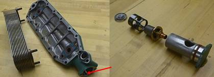 康明斯Cummins QSK23發動機在每個機油濾清器內都有一個旁通閥,設定開啟壓力為 241 kp (35PSI).濾清器阻力過大時,旁通閥前后壓差使其克服彈簧力開啟。這使得機油旁通流過濾清器,向發動機提供機油