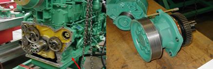 康明斯Cummins QSK23發動機機油泵裝在發動機前端.此三個齒輪泵以1.45倍曲軸轉速運轉。