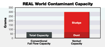 潤滑油中污染物積聚后所產(chǎn)生的油泥會導(dǎo)致發(fā)動機(jī)磨損極速加劇。 而在實(shí)驗(yàn)室以外的實(shí)際環(huán)境中,油泥將是最常見的大敵。 康明斯濾清系統(tǒng)已通過實(shí)際環(huán)境中的測試,而非簡單的臺架測試證實(shí) Venturi™ 組合的旁通多層疊片可有效清除有害油泥,并使?jié)櫥拖到y(tǒng)獲得比僅使用全流量合成濾清器時更高的過濾效率。 事實(shí)上,Venturi™ 組合的去污能力可達(dá)單獨(dú)的全流量合成濾清器的三倍。