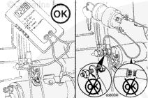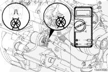 如果萬用表指示電壓且起動馬達(dá)無法工作,則起動馬達(dá)電磁閥有故障,必須進(jìn)行更換。參考第 13 節(jié)中的步驟 013-020。