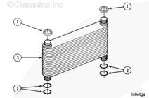 從康明斯QSK45 發(fā)動(dòng)機(jī)上拆下 3 個(gè)機(jī)油冷卻器芯 (2) 或從 QSK60 發(fā)動(dòng)機(jī)上拆下 4 個(gè)機(jī)油冷卻器芯 (2)。從每個(gè)冷卻器芯 (2) 上拆下 4 個(gè) O 形密封圈 (1),并將其廢棄。