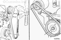 安裝風(fēng)扇輪轂支架和風(fēng)扇。 步驟 008-036。安裝并調(diào)整風(fēng)扇驅(qū)動皮帶。 步驟 008-002。安裝并調(diào)整充電機驅(qū)動皮帶。 步驟 013-005。