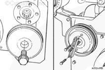 拆下附件驅(qū)動皮帶輪。 參考步驟 009-004。拆下充電機驅(qū)動皮帶輪。 參考步驟009-010,