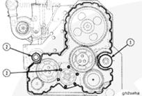 將新密封圈安裝在附件驅(qū)動安裝 (1) 和水泵安裝 (2) 位置。將 6 個新螺栓 O 形圈安裝在曲軸油封安裝螺栓位置 (3)。