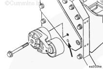 拆下風(fēng)扇驅(qū)動皮帶。 參考步驟 008-002。拆卸充電機驅(qū)動皮帶。 參考步驟 013- 005。