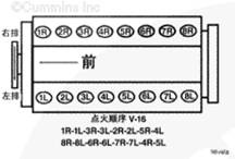 注: 并非所有的康明斯K50柴油發動機都有相同的點火順序。發動機的康明斯搖臂室蓋上有貼紙,且發動機銘牌印有”修訂的點火順序”。