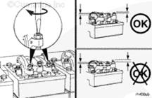 要使用盤車裝置,拆卸固定夾并朝著飛輪方向推動此裝置軸。必須逆時針轉動盤車裝置,以按正常旋轉方向轉動飛輪和曲軸。