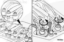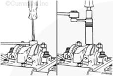 如果搖臂沒有拆過,在有問題的兩個氣缸上擺動氣門搖臂。如果感到氣缸的兩個搖臂都已松動,則可以開始調節其跨接壓板和氣門。