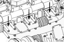 如果發動機出現的癥狀顯示噴油器可能無法點火,進行以下檢查:操作發動機至正常工作冷卻液溫度 80°C [180°F]。關閉發動機,并讓排氣歧管冷卻 10 分鐘。使用 204°C [400°F] 溫度指示劑(零件號 3165163)在所有排氣歧管端口表面做標記 (1)。標記必須盡可能地靠近缸蓋,但不能直接做在排氣歧管的安裝法蘭上。起動發動機,并輕載短時間運轉。發動機不要重載運行,運行時間也不要過長,否則結果會不準確。