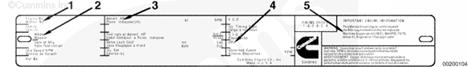 發(fā)動機銘牌顯示你的發(fā)動機的重要信息。發(fā)動機生產(chǎn)序號和控制零件目錄 (CPL) 提供訂購零件和維修的數(shù)據(jù)。未經(jīng)康明斯公司批準不得擅自變更發(fā)動機銘牌。
