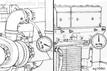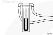 要測試空-空中冷器有無過度的堵塞情況,則需將壓力計的一端安裝到進氣歧管中,將另一端安裝到渦輪增壓器壓縮機出口中。以最大功率 (rpm) 和負載運轉發動機。觀察壓力計(零件號 3824718)或等同物,如果壓差高于 13.5 kPa [2 psi],則檢查空-空中冷器和管路有無內部堵塞。如有必要,維修或更換。請參考本服務公告中的“空-空中冷器系統的清潔和檢查”。