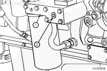 康明斯L10/M11 壓力管安裝,如果使用備用位置,確保它是一個臟的機油端口。從機油濾清器座 (1) 前面拆下螺塞 (2)。