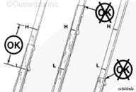 檢查康明斯機油標尺上的機油油位。其必須加注到 L(低油位)和 H(高油位)標記之間。