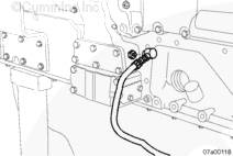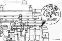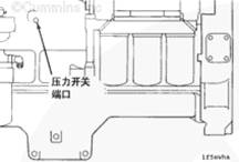 將康明斯壓力開關 安裝在機油濾清器后面,左排上的主油道中,如圖所示。