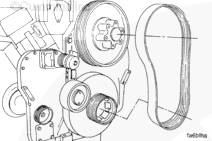 安裝康明斯風扇皮帶。參考第 A 節中的步驟 008-002(冷卻風扇驅動皮帶)。