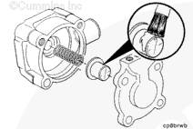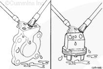 康明斯水泵漏水孔 (1) 處有少量化學堆積物或出現條紋屬正常現象。不要維修或更換水泵,除非確認確實泄漏。有關更換問題,請與Cummins® 特約維修站聯系。