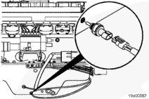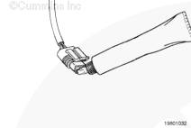 將新康明斯傳感器裝入發動機缸體中。使用加長套筒(零件號 3823843)擰緊傳感器。扭矩值: 14 n.m [124 in-lb]