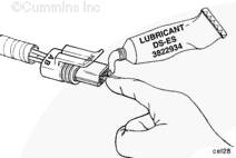僅使用康明斯推薦的零件號為 3822934 的 DS-ES 潤滑劑。接頭內粘有機油或潤滑脂等其它潤滑劑將會導致 ECM 損壞、發動機性能下降或接頭觸針過早磨損。