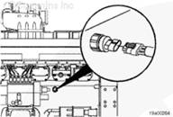 將發動機線束 Deutsch 接頭連接到發動機線束延長電纜上(如果使用)或者發動機線束適配器電纜上。使用一個 4 mm [5/32 in] 六角扳手擰緊。扭矩值: 3 n.m [27 in-lb]