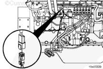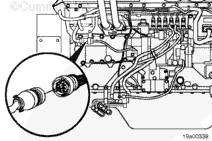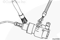 將車輛鑰匙開關轉到斷開 (OFF) 位置。斷開 9-針 Deutsch 噴油泵電氣接頭。不要斷開 2-針 EHAB 裝置接頭