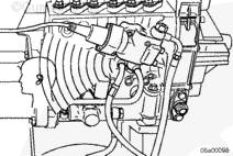 將鑰匙開關轉到 OFF(斷開)位置。從發動機線束上斷開 2-針 EHAB 裝置接頭。