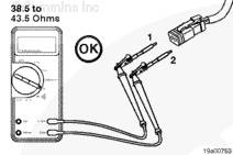 測量 EHAB 裝置接頭觸針之間的電阻。EHAB 內部電阻讀數必須在 38.5 至 43.5Ohms 之間。如果 Bosch® EHAB 裝置的兩個測試均不通過,必須由經授權的 Bosch® 維修站進行維修,或予以更換。更換時,Bosch® EHAB 裝置只能作為一個整體更換。