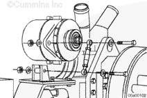 順時針轉動調整螺釘以張緊皮帶。擰緊皮帶。參考驅動皮帶張力 013-005。使用(Burroughs)皮帶張力規測量皮帶張力。 QST30 發動機使用 5 肋 K 形皮帶。