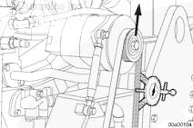 轉動調節桿以解除皮帶張力。拆下充電機皮帶。參考步驟 013-005。