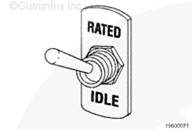 客戶提供的怠速/額定開關允許選擇怠速或額定轉速模式。ECM 的接地使 ECM 可以從額定轉速變為怠速轉速。可使用服務軟件監測此開關。