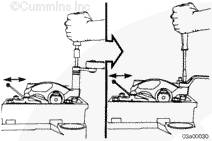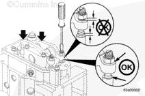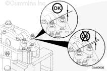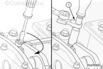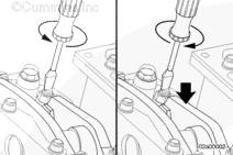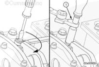 如果沒有拆下搖臂并再次安裝,在有問題的兩個氣缸上擺動氣門搖臂。如果感到氣缸的兩個搖臂都已松動,則可以開始調節(jié)其跨接壓板和氣門。