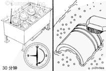 用熱肥皂水和非金屬刷子清除積碳。