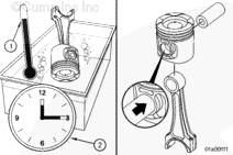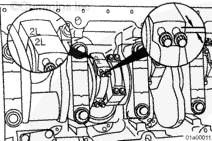連桿和連桿蓋的號碼必須相同,并裝入正確的氣缸中,否則可能會出現(xiàn)發(fā)動機(jī)損壞。