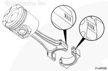 在連桿和與其相配的連桿蓋上蝕刻有唯一號碼(不是缸號)。當(dāng)把連桿和連桿蓋裝到發(fā)動機(jī)上時,連桿和連桿蓋上的號碼必須相符,并安裝在發(fā)動機(jī)的同一側(cè)。