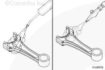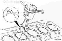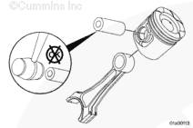 使用兩根 11-mm 尼龍連桿導(dǎo)向銷(零件號 3163363)。安裝導(dǎo)向銷可防止連桿掉落,損壞其它發(fā)動機(jī)零件。