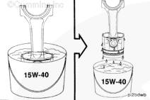 將活塞和活塞環(huán)總成浸在一個盛有干凈的 SAE 15W-40 機(jī)油的容器中。將活塞和活塞環(huán)總成從容器中取出,瀝盡過多的機(jī)油。