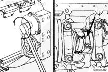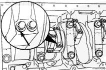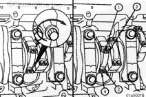 安裝連桿時,連桿(右排和左排)上壓印的缸號必須朝向左排凸輪軸。如果連桿安裝得不正確,可能導(dǎo)致發(fā)動機(jī)損壞。