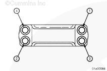 用清潔的 15W-40 機(jī)油潤滑連桿螺栓的螺紋和墊圈。安裝連桿蓋、螺栓和墊圈。先用手?jǐn)Q緊所有螺栓。