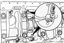 用橡膠錘敲擊連桿螺栓,使連桿蓋從環(huán)形定位銷上松開。拆下連桿螺栓。拆下連桿蓋。拆下連桿下軸承。在軸瓦定位舌平面上標(biāo)上缸號和字母 L(下)。