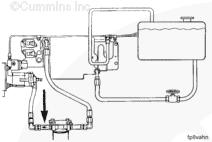 1左排燃油歧管(零件號 3092086),2流至 EHAB 進口的燃油(抽吸未經過濾的燃油),3自輸油泵出口流入的燃油(未經過濾的增壓燃油),4右排燃油供油口(燃油從右排燃油連接塊流出)(抽吸未過濾的燃油),5自油箱/粗濾器的供油進口,6流至供油箱的燃油(回油),7自右排燃油連接塊的回油,8自噴油泵/EHAB 溢流管和噴油器回油管的回油,9流至后燃油濾清器的燃油(未經過濾的增壓燃油)。10自后燃油濾清器的燃油(經過濾的增壓燃油),11流至噴油泵進口 (EHAB) 的燃油(經過濾的增壓燃油)。
