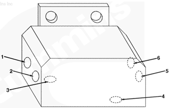 1左排燃油連接塊(零件號 3094175),2燃油噴油泵溢流閥的燃油(回油),3自左排噴油器回油管的燃油,4至左排燃油歧管的回油,5插入