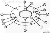 將 30 噸液壓缸置于兩顆雙頭螺柱上。將剩余的兩顆雙頭螺柱安裝進凸輪軸齒輪。