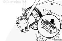 檢查并記錄鍵相對于凸輪軸齒輪旋轉方向的偏移方向(相同或相反)。拆卸鍵。