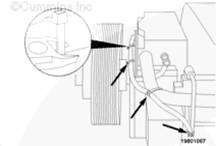 注: 檢查是否有兩個管塞安裝在左排中冷器供應管法蘭上。如果沒有安裝,使用 Loctite(零件號 3375066)安裝管塞并擰緊。