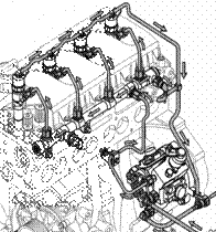 • 所有噴油器的回油匯集到一根回油管。該管路內有一個低壓單向閥,防止其他部件的回油通過該管路回流至噴油器