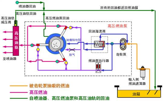 • 部分燃油經燃油溢流閥去潤滑高壓燃油泵