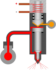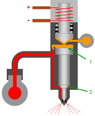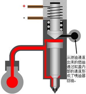 • 噴油器電磁閥未通電,電磁閥彈簧使電磁閥鐵芯保持在關閉的位置