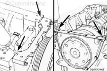 拆下起動馬達。參考第 13 節中的步驟 013-020。拆下變速箱和所有相關部件,如果配備。參考 OEM 維修手冊。如果配備,拆卸飛輪。參考第 16 節中的步驟 016-005。拆下柔性連接盤總成(如果配備)。參考第 16 節中的步驟 016-004??赡苄枰鹣虑S通氣管。參考第 3 節中的步驟 003-018。拆下任何由 OEM 安裝在飛輪殼上的部件(消聲器、換檔機構、空氣濾清器,等)。參考 OEM 維修手冊。拆下飛輪殼。參考第 16 節中的步驟 016-006。