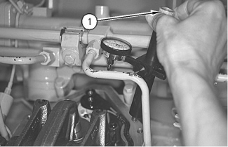 8.     Tighten the adjustment screw locknut to a torque of 70 ± 15 N·m (50 ± 11 lb ft) and check adjustment again. If necessary, repeat the procedure until the adjustment is correct.