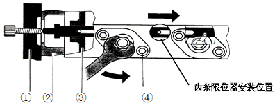 1.專用工具,2.外殼,3.齒條導套,4.單體泵固螺栓。