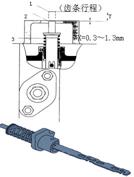 控制齒條起動位置與停車位置的位移差值即是控制齒條的行程 | |
